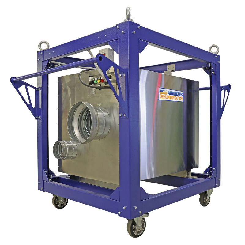 Le KT2200 est un déshumidificateur à adsorption économique conçu pour les applications nécessitant une faible humidité relative et où les travaux sont effectués à très basse température. Avec une consommation électrique moyenne de seulement 10 kW/h, ce modèle est nettement plus économique que les appareils similaires disponibles ailleurs. Considéré comme une option plus efficace que les déshumidificateurs par réfrigération lorsque les températures sont inférieures ou égales à 10°C, le KT2200 peut maintenir des zones sèches jusqu’à 7 000 m³ ou assécher des zones jusqu’à 3 500 m³. Comme tous les déshumidificateurs à adsorption, ce produit aspire l’air à travers une roue rotative contenant un gel de silice pour éliminer l’humidité de l’atmosphère. Cette unité particulière est couramment utilisée dans des applications difficiles ou dangereuses, notamment dans les réservoirs de stockage de carburant, les sites marins et les cales de navires.