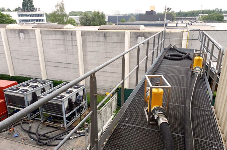Deux groupes froid de 550 kW VLT ont été livrés et raccordés au système de refroidissement existant. En moins de 24 heures le producteur a repris son activité et a pu continuer à servir ses clients sans problèmes.