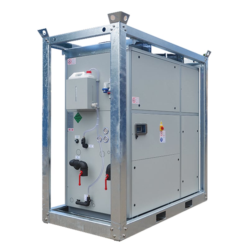 Le 50 kW VLT/HP est un groupe froid puissant et fiable, adapté à un large éventail d’applications industrielles et commerciales dans lesquelles des volumes élevés de refroidissement sont indispensables (eau glacée jusqu’à -12°C). Le groupe froid est aussi équipé d’une pompe à chaleur (HP) pour la production d’eau chaude. Sa faible consommation énergétique et l’emploi de gaz réfrigérant respectueux de l’environnement en font un produit l’idéal pour de nombreux secteurs. Le 50 kW VLT/HP peut être raccordé à toute notre gamme de centrales de traitement d’air, fournissant de la climatisation ou chauffage à haute capacité.