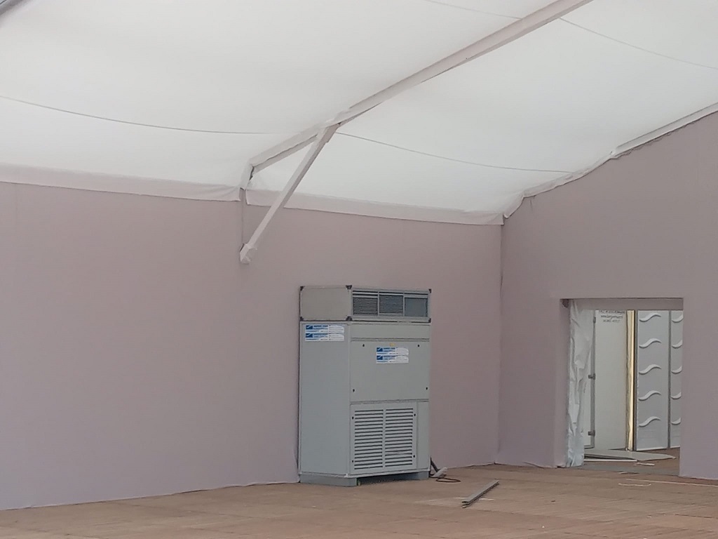 Dans la tente, 11 ventilo convecteur (unités de sortie d’air) ont été installées afin de pouvoir fournir du chauffage ou de la climatisation selon les besoins.