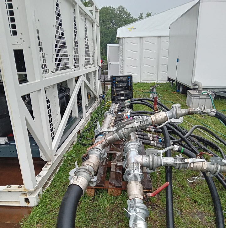 Pour le chauffage, 2 chaufferies (chaudières mobiles) ont été installées. Un KH100 de 100kW et un KH300 de 300kW.
